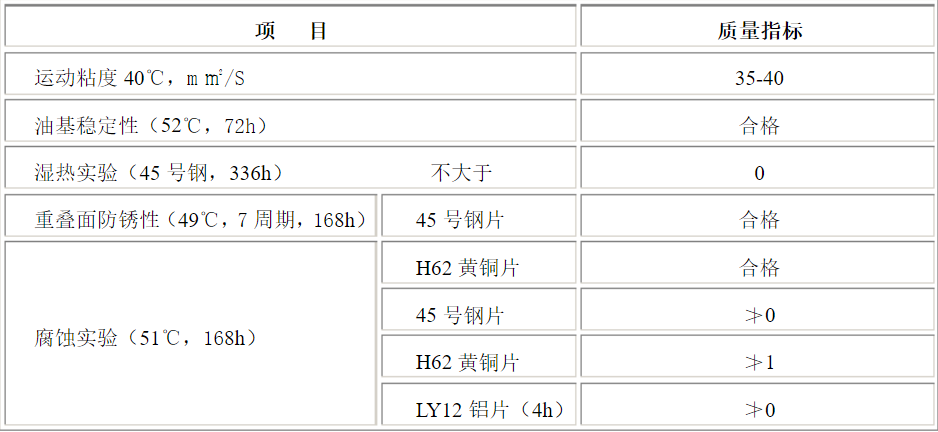 901防锈油主要技术指标: